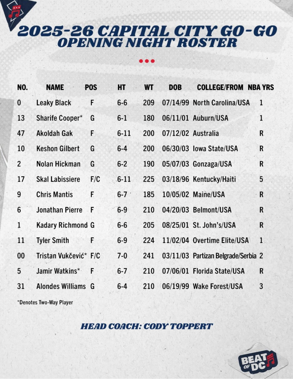 GO-GO ANNOUNCE 2025-26 OPENING NIGHT ROSTER