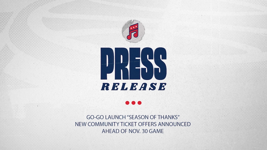 GO-GO LAUNCH “SEASON OF THANKS” - NEW COMMUNITY TICKET OFFERS ANNOUNCED AHEAD OF NOV. 30 GAME